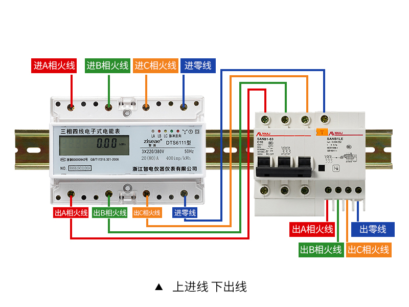 三相四線制,在低壓配電網(wǎng)中,輸電線路一般采用三相四線制,其中三條線路分別代表A,B,C三相,另一條是中性線N或PEN電源側(cè)的中性點接地,則中性線也稱為零線(老式叫法,應逐漸避免,改稱PEN,如果不接地,則從嚴格意義上來說,中性線不能稱為零線)。在進入用戶的單相輸電線路中,有兩條線,一條我們稱為相線L,另一條我們稱為中線N,中線正常情況下要通過電流以構(gòu)成單相線路中電流的回路。而三相系統(tǒng)中,三相平衡時,中性線(零線)是無電流的,故稱三相四線制;在380V低壓配電網(wǎng)中為了從380V線間電壓中獲得220V相間電壓而設(shè)N線,有的場合也可以用來進行零序電流檢測,以便進行三相供電平衡的監(jiān)控。三相導軌式電表的接線方式有區(qū)別老式背掛式電表,具體接線方式如下: