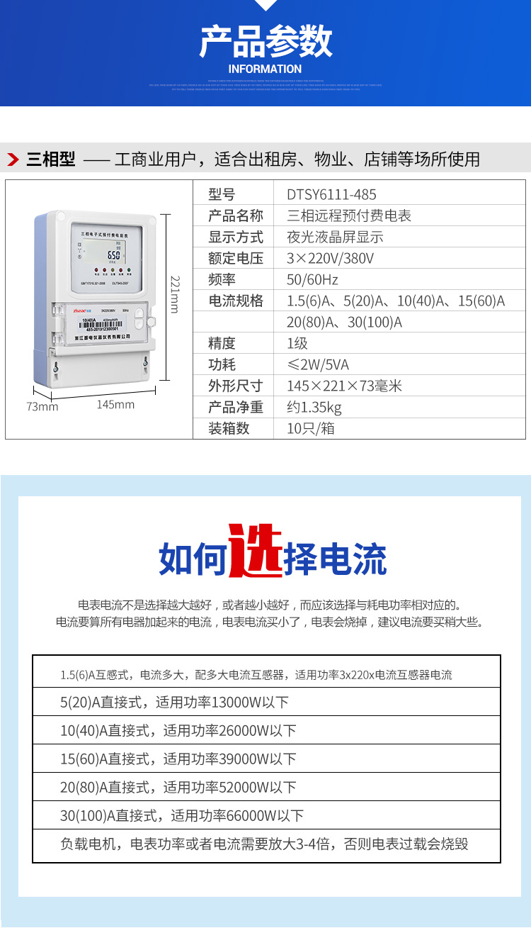 型號:DTSY6111三相遠程充值電表